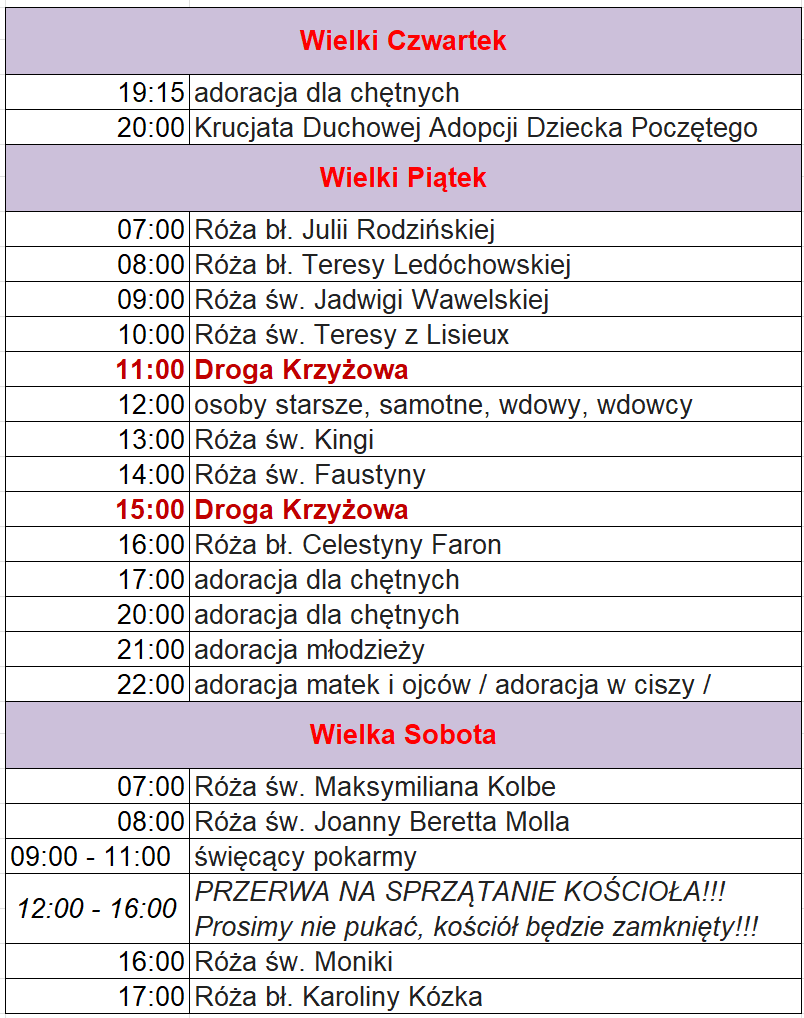 Porządek adoracji – TRIDUUM PASCHALNE 2026